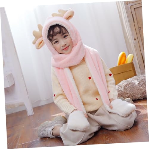 Cute Fawn Ears Winter One-Piece Scarf Hat Set for Soft Winter Accessories with Gloves Stylish and Warm Outfit for Girls for Daily Wear and Parties Pink 1
