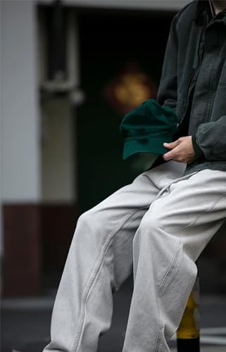 Men’S Casual Straight Baggy Denim Cargo Pants Drawstring Midweight Fashion Trousers Slim Fit Full Length Jeans 4