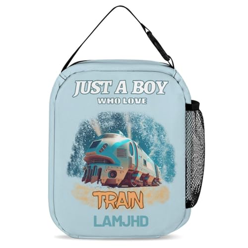 3Pcs Set Train Backpack,Personalized Canvas Train Print Backpack Large Capacity Laptop Backpack with Name 1