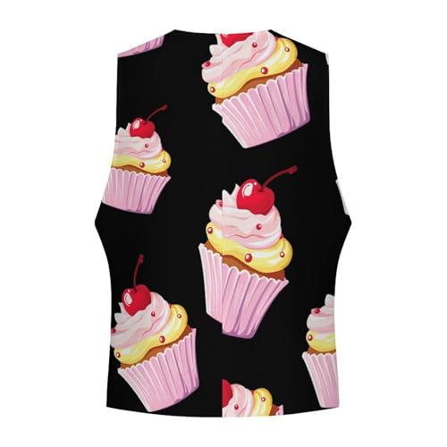 Cherry Cupcake Men's Formal Suit Vest for Business Formal Or Casual Dress Waistcoat Wedding 1