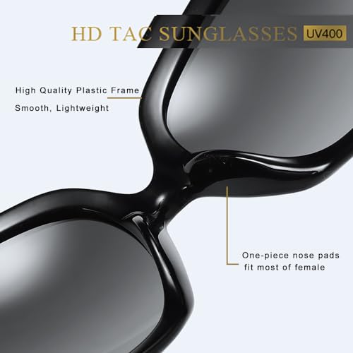 • High Quality And Durable Sunglasses -- Ladies large square sunglasses are made of high quality smooth plastic frame, hard HD lenses. Well-built reinforced metal hinges offer long-time use, and flat temple tips bring skin-friendly, comfortable wear.