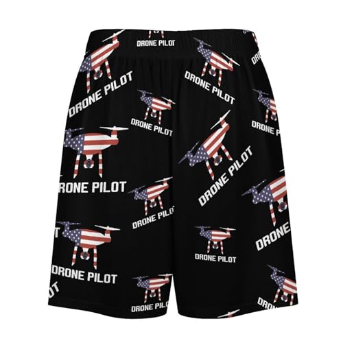 USA Flag Drone Pilot Men's Pajama Shorts Loungewear Elastic Waistband Beach Shorts with Pockets 6