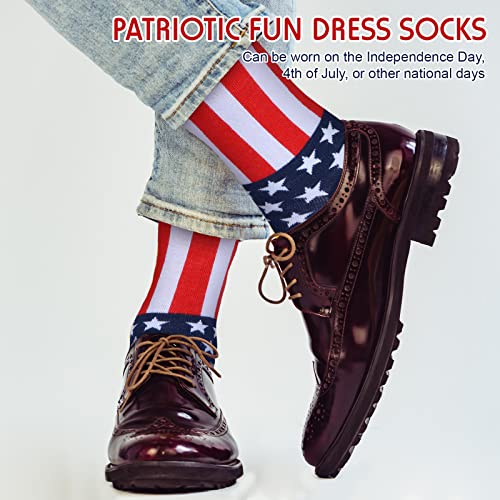 • Wide range of uses: patriotic fun dress socks are designed with stars and stripes patterns, can be worn on the Independence Day, 4th of July, or other national days, you can also wear them as party socks, business office suit socks, or wedding socks, etc.; Classic designs make them easy to match with sneakers, sports shoes, leather shoes, casual shoes, etc