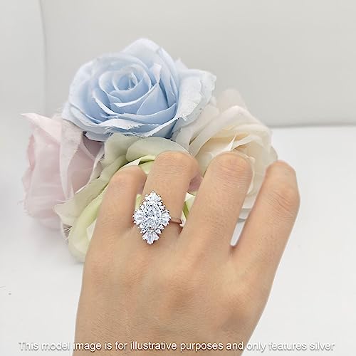 • PERFECT & COMFORT FIT: Ring Measurements: 19.8mm(0.77"), Center Stone Measurements: 8mm X 4mm. Ring Size: 5 to 10. It is Naturally-vibrant, superior quality color gemstone. Captivating Art Deco Marquise Engagement Ring with Baguette and Round Halo.