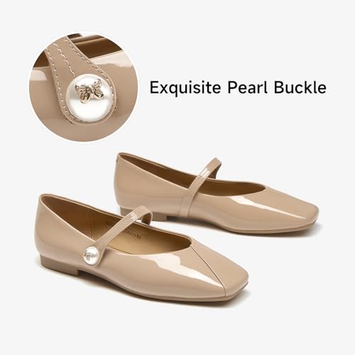 BEAU TODAY Mary Jane Flats for Women, Womens Mary Janes, Ballet Flats for Women, Patent Leather Square Toe Flats, Comfortable Casual Fashion Slip-on Flat Dress Shoes 5