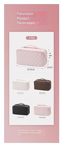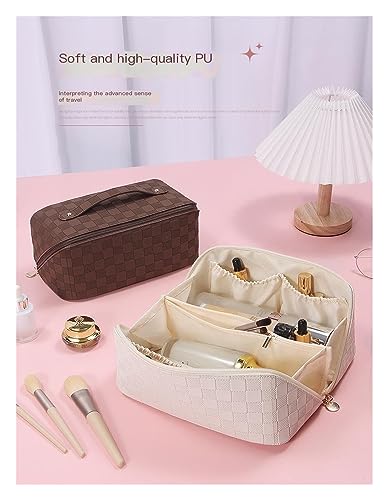Grid Pattern Portable Large Capacity Makeup Bag, Travel Grooming and Storage Fashionable Small Bag(White) 7