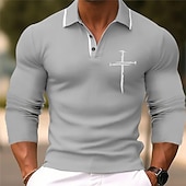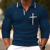 Highlights [Fabric] : Crafted from a premium polyester fabric, this men's long-sleeve polo shirt ensures superb durability while offering comfort and breathability, making it an ideal choice for the cooler fall and winter seasons. [Fit] : Designed with a refined silhouette, this polo shirt features a slim fit that highlights a modern, tailored look, making it perfect for those who appreciate a sleek and polished style. [Design Highlights] : The shirt boasts a collared neck with distinctive white piping, complemented by a striking 3D print Christian cross graphic on the chest. The button-down front adds classic appeal, while the long sleeves enhance its versatile wearability. [Occasions] : Suitable for a variety of occasions, this polo is perfect for business casual settings, workwear, formal events, and festive gatherings. Its adaptability ensures it pairs well with both jeans and chinos, serving as a versatile addition to any wardrobe. [Size] : Available in a wide range of sizes from S to 3XL, this polo shirt caters to various body types, ensuring a comfortable fit for every wearer. Available in multiple color options such as blue, green, black, and gray.