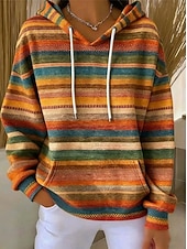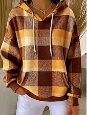 More information about Women's Pullover Hoodie Sweatshirt Graphic Geometric Plaid Warm Vintage Casual Long Sleeve Hooded Regular Tops Street Dailywear Casual Print Front Pocket Maroon Wine Orange Brown Green Spring Fall