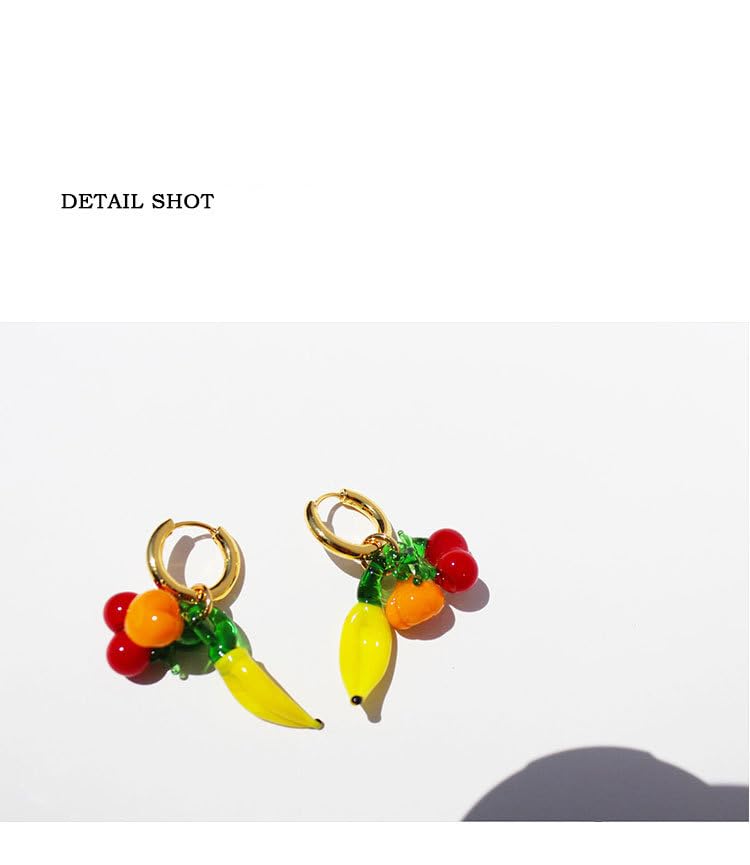 • Playful Fruit Design by WHHFS: These dangle earrings from WHHFS feature handcrafted glass charms—cherries, bananas, and pumpkins! A top pick for “fruit earrings” lovers, adding a quirky, tropical vibe to any outfit.