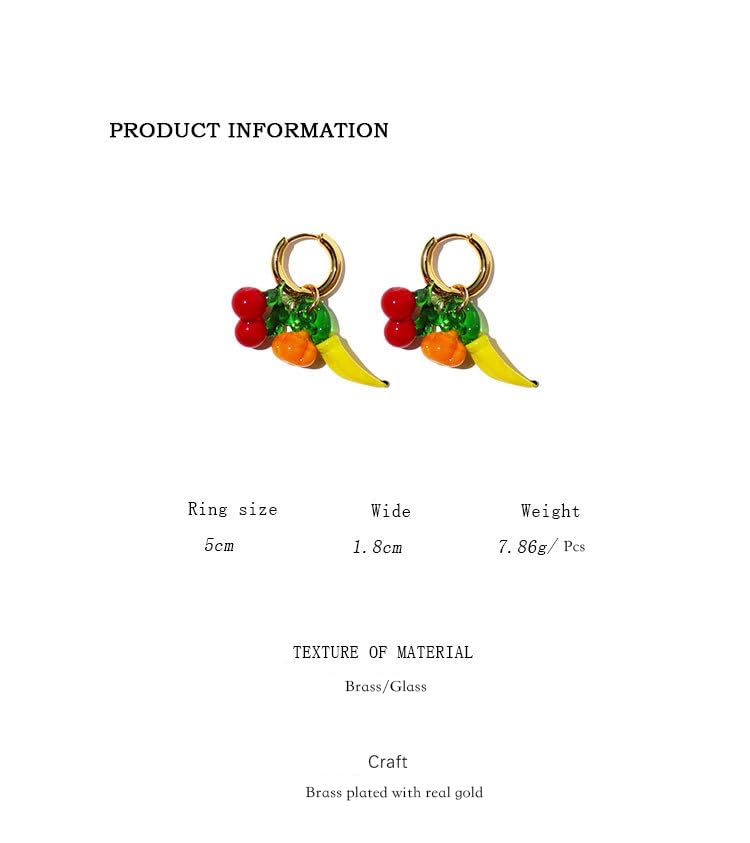 Fun Fruit Dangle Earrings for Women - Glass Cherry, Banana, Pumpkin Charms, 18K Gold - Plated Brass Hoops, Quirky Summer Statement Jewelry with Velvet Box 7
