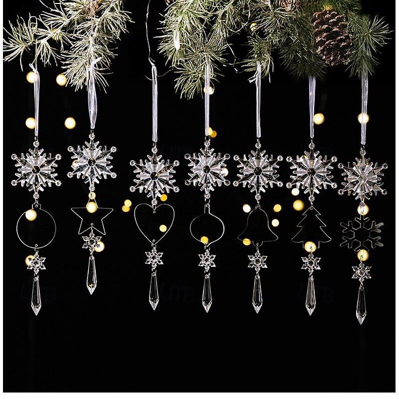 HOT ! 7pcs Christmas Crystal Icicle Ornaments Clear Acrylic Hanging Decorations for Christmas Tree, DIY Transparent Ice Stick & Snowflake Holiday Decor