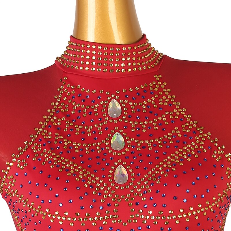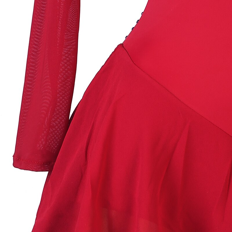 More information about Figure Skating Dress Women's Girls' Ice Skating Dress Burgundy Patchwork Open Back Mesh High Elasticity Training Competition Skating Wear Classic Crystal / Rhinestone Long Sleeve Ice Skating Figure