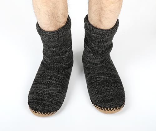 HOT ! Panda Bros Cozy Boot Slippers for Men Indoor, Fuzzy House Shoes with Non Slip Gripper Soles, Winter Knitted Non-Skid Home Warm Floor Socks