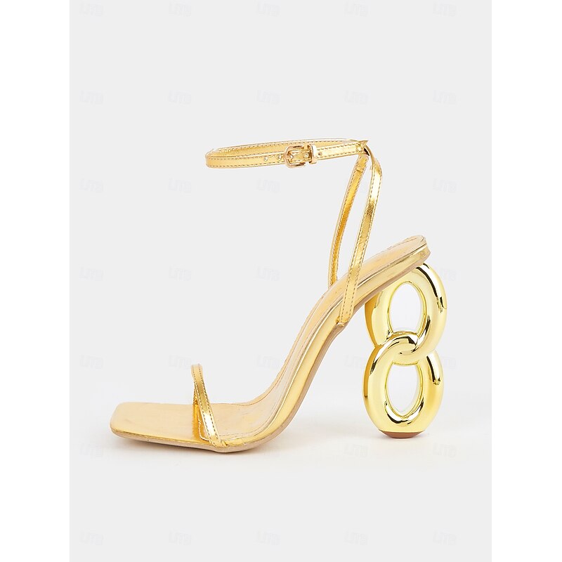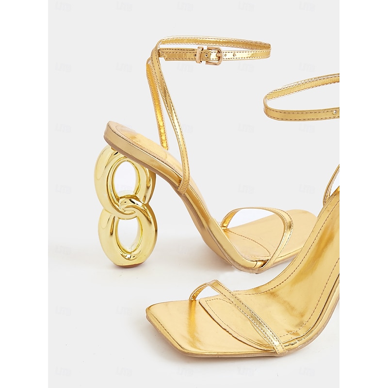 More information about Women's Black Ankle Strap Sandals with Statement Gold Chain Heels – Modern Luxury High Heels for Parties and Formal Events