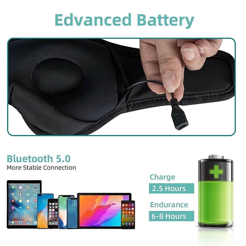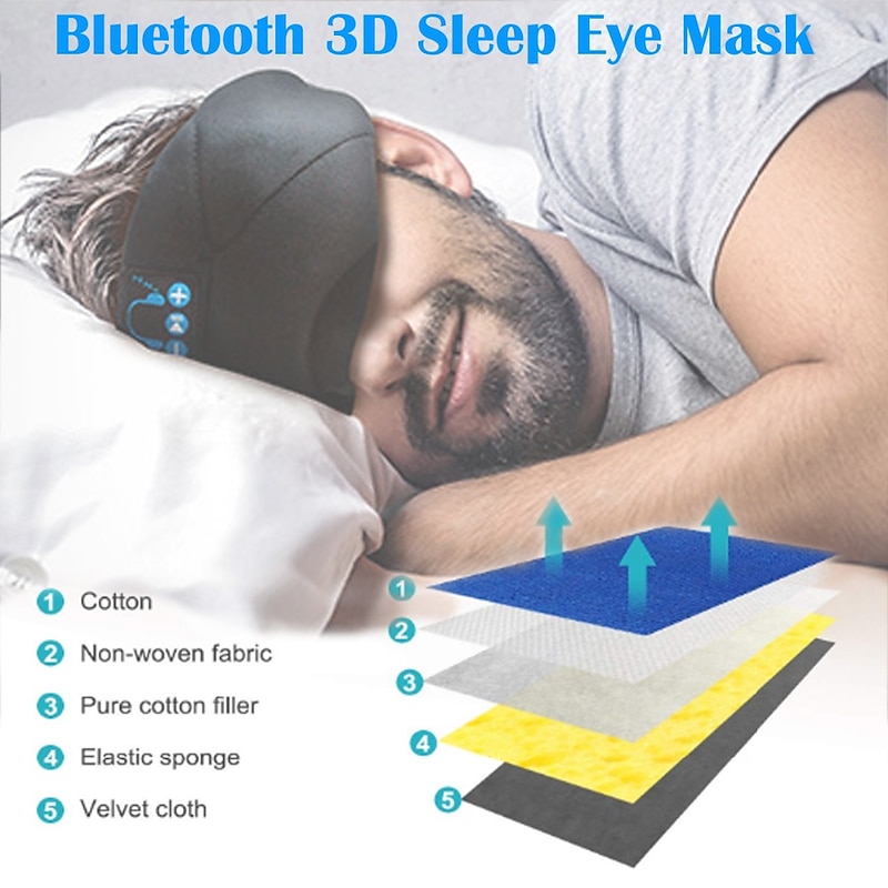 Sleep Headphones 3D Sleep Mask Bluetooth Wireless Music Eye Mask Sleeping Headphones for Side Sleepers Sleep Mask with Bluetooth Headphones Ultra-Thin Stereo Speakers Gift for Men Women 14
