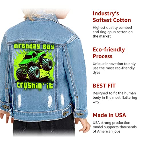 HOT ! Birthday Boy Toddler Denim Jacket - Truck Print Jean Jacket - Art Denim Jacket for Kids