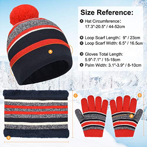 • 【 Lovely Pom Hat Neck Warmer and Gloves Set for Most 3-6 Year Old Boys and Girls 】: These exquisite knitted kids winter beanie hat scarf and glove sets are well stretched, hugging your boys and girls snugly and comfortably, keeping them away from the cold wind. Hat Circumference---17.3"-20.5", Loop Scarf Length---9", Palm Width---3.1"-3.9", Gloves Length---5.9"-7.1"