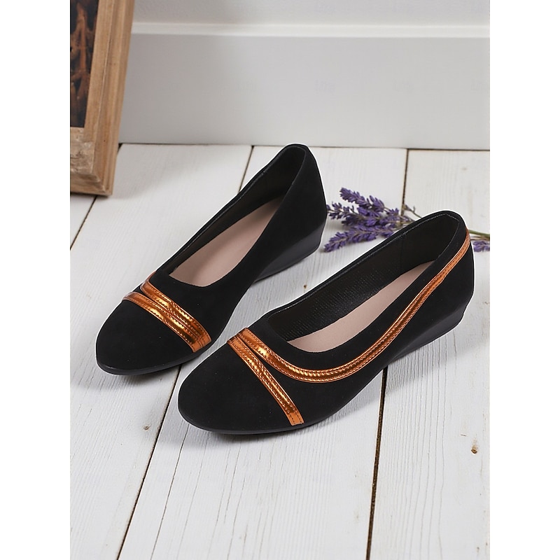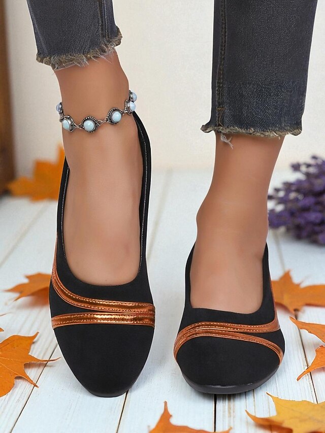 HOT ! Women's Black Ballet Flats – Comfortable Slip-On Round Toe Shoes with Metallic Trim for Work, Office and Everyday Wear
