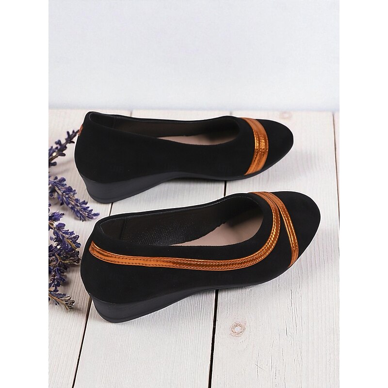 More information about Women's Black Ballet Flats – Comfortable Slip-On Round Toe Shoes with Metallic Trim for Work, Office and Everyday Wear
