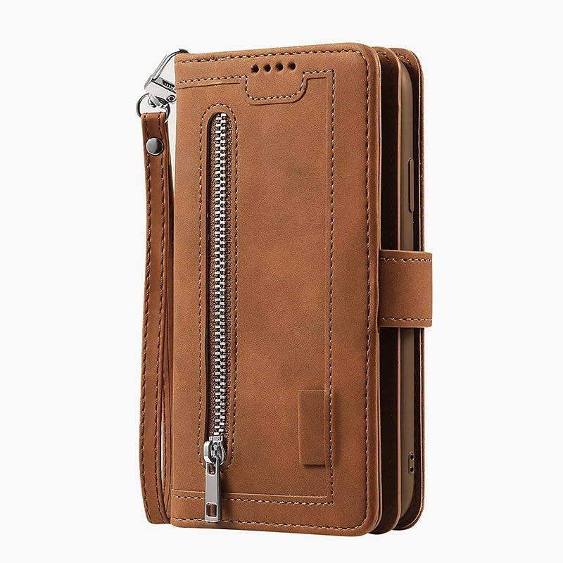 Highlights - Specially designed for Samsung Galaxy for perfect compatibility - Conveniently combines phone case and wallet in one folio-style case, eliminating the need for carrying a separate wallet - Detachable wrist strap allows for easy carrying and magnetic snap closure provides added security - Multi-function wallet includes 9 card slots and a cash slot, as well as a zipper wallet pocket for coins and banknotes - Made from premium leather and durable TPU inner bumper, offering both comfort and style with reinforced stitching for added durability and protection - Precise cutouts provide easy access to all ports and functions without removing the case.