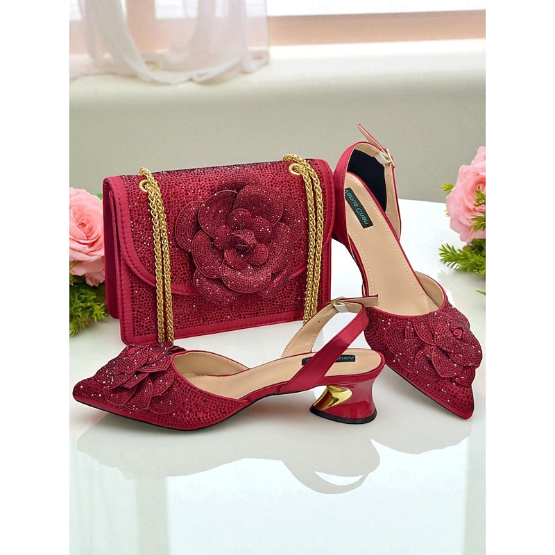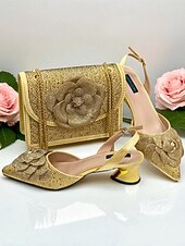 More information about Women's Gold Rhinestone Slingback Pumps with Matching Handbag Set - Elegant Floral Design Dress Shoes and Bag for Formal Events and Cocktail Parties