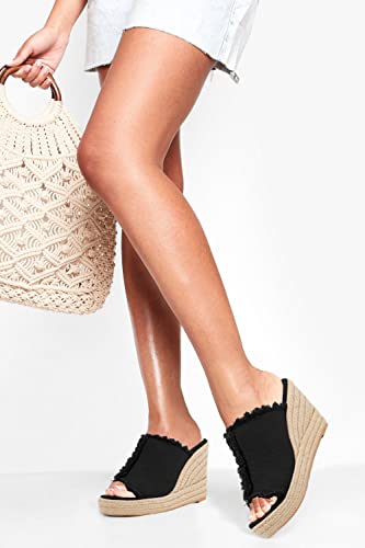 • Features: Peep toe, denim upper, tassel trim, backless, slip on closure. Cute summer dressy espadrilles wedge sandals for women and teen girls.