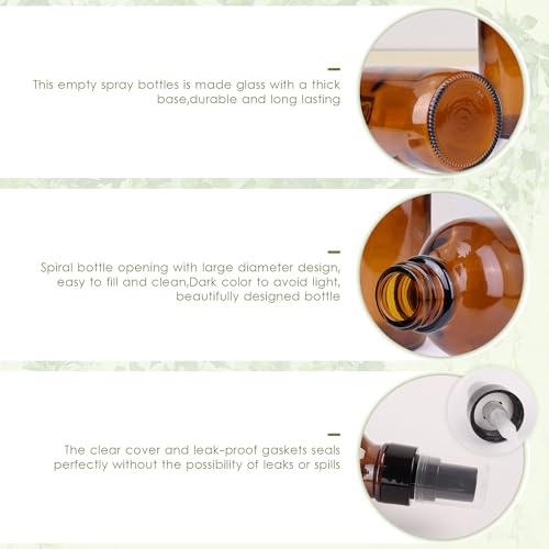 • PRESERVE THE ORIGINAL STATE: The amber glass spray bottles protects light-sensitive liquids in their original state,no longer have to worry about light sensitive light causing your mixtures to lose potency over time,keeps your essential oils safe plus the glass is not affected by oils like citrus