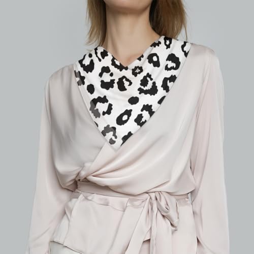White Black Leopard Print Silk Feeling Scarf for Women 23.6 Inch Bandana Lightweight Breathable Square Neck Satin Scarfs Fashion Silk Like Head Scarf Neckerchief for Bag Hair Scarves Decor Gift 7