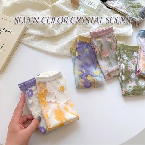Womens Sheer Socks,Summer Vintage Floral Mesh Socks,Lace Elastic Cottagecore Glass Silk Sock 7