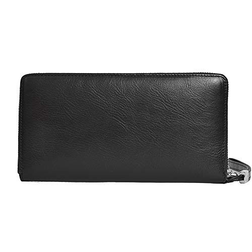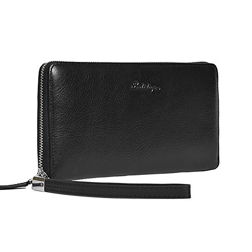 HOT ! BALIDIYA Men Clutch Purse Genuine Leather Wallets Wristlet Slim Bags Card Holder Organizer Handbags, Black-2