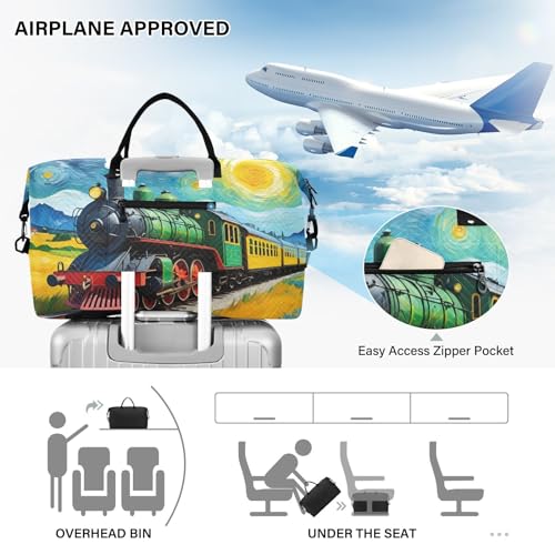Large Travel Duffel Bag, Train Gogh Sports Tote Gym Bag, Shoulder Weekender Overnight Bag for Women Men, Carry On Luggage with Toiletry Bags 1