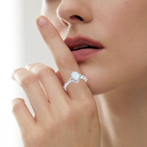 • 【PREMIUM MATERIAL】The center stone features premium quality 1.5 carat oval cut white opal in 4-prong setting. It is crafted from genuine 925 sterling silver, indicated by the stamped 925, to provide lasting shine and durability.