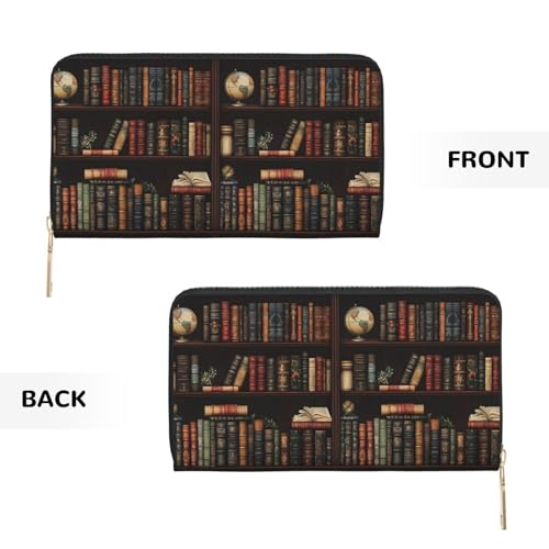 Wallet Women - Vintage Bookshelf Print Leather Wallet Large Capacity Bifold Long Ladies Wallets With Zipper 7