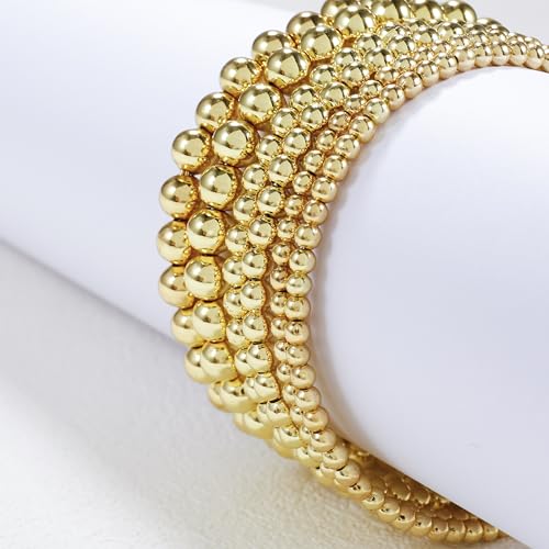 • Gold ball bead stackable bracelet size: Circumference: 7.1 inches/18.0 cm. Set includes 2PCS 3mm gold bead bracelets, 2PCS 4mm gold bead bracelets and 2PCS 6mm gold bead bracelets,6 pieces in total.