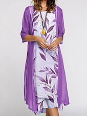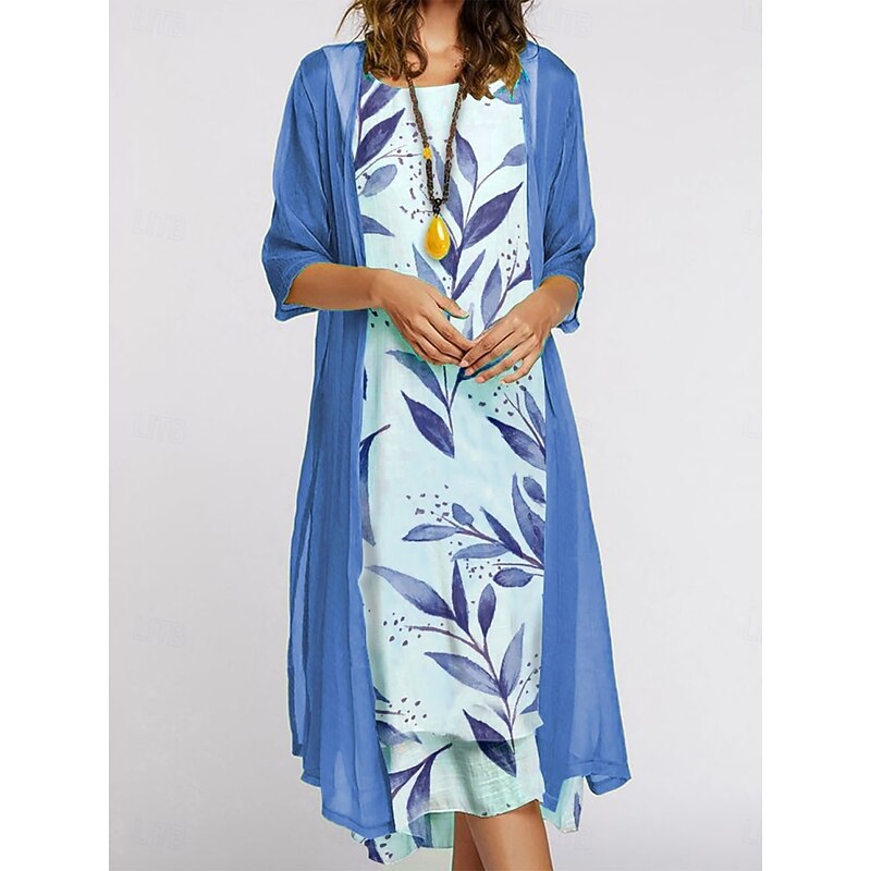 More information about Women's Dress Set Summer Dress Casual Floral Print Midi Dress 3/4 Length Sleeve Crew Neck Outdoor Daily Blue Purple Green Summer Spring Regular Fit