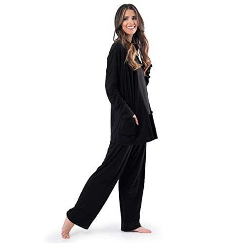 • Sleepwear set includes sleep tank top, pajama pants, and matching cardigan
