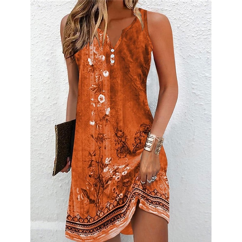 More information about Women's Mini Dress Petite Dress T Shirt Dress Tee Dress Sundress A Line Dress Active Fashion Streetwear Outdoor Vacation Street Loose Fit Floral Sleeveless V Neck Orange Green Dark Gray