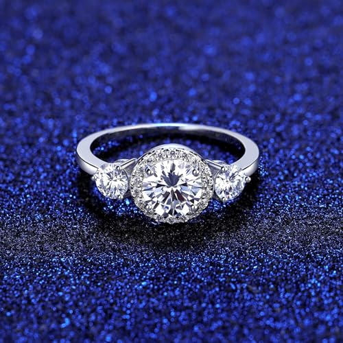 S925 Sterling Silver Engagement Rings for Women, 1ct Diamond Band Ring Round Cut VVS1 D-Color, Bridal Gift for Wife 1