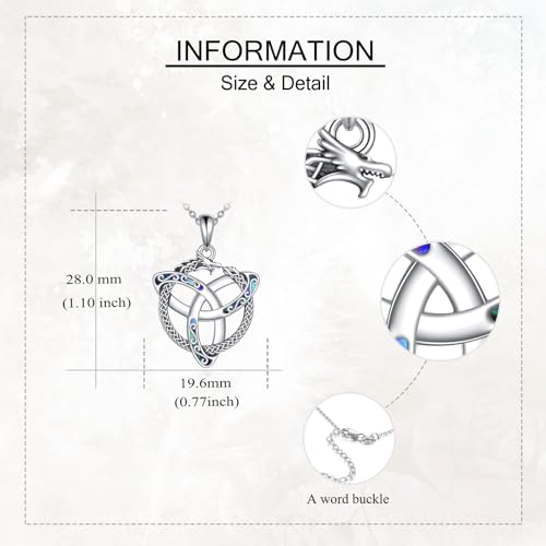 More information about Celtic Dragon Necklace 925 Sterling Silver Ablone Shell Celtic Knot Dragon Pendant Necklace Trinity knot Jewelry Present for Women Mom
