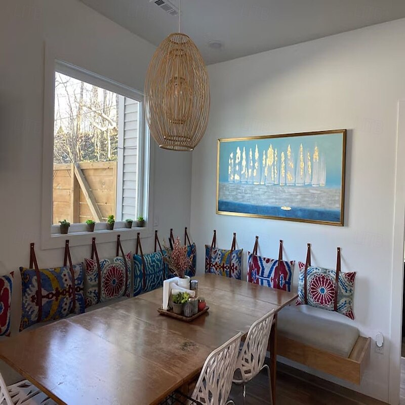 sailboat painting Boat oil paintings hand painted Natural home decor landscape  Oil Painting on Canvas Abstract Art Water sailboat painting sky blue Nature gold art paintings for Living Room Painting 6