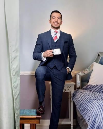 More information about Wangyue Plaid Suit for Men Slim Fit 3 Piece Checked Suits Formal Two Buttons Wedding Business Suits Blazer Vest Pants Set