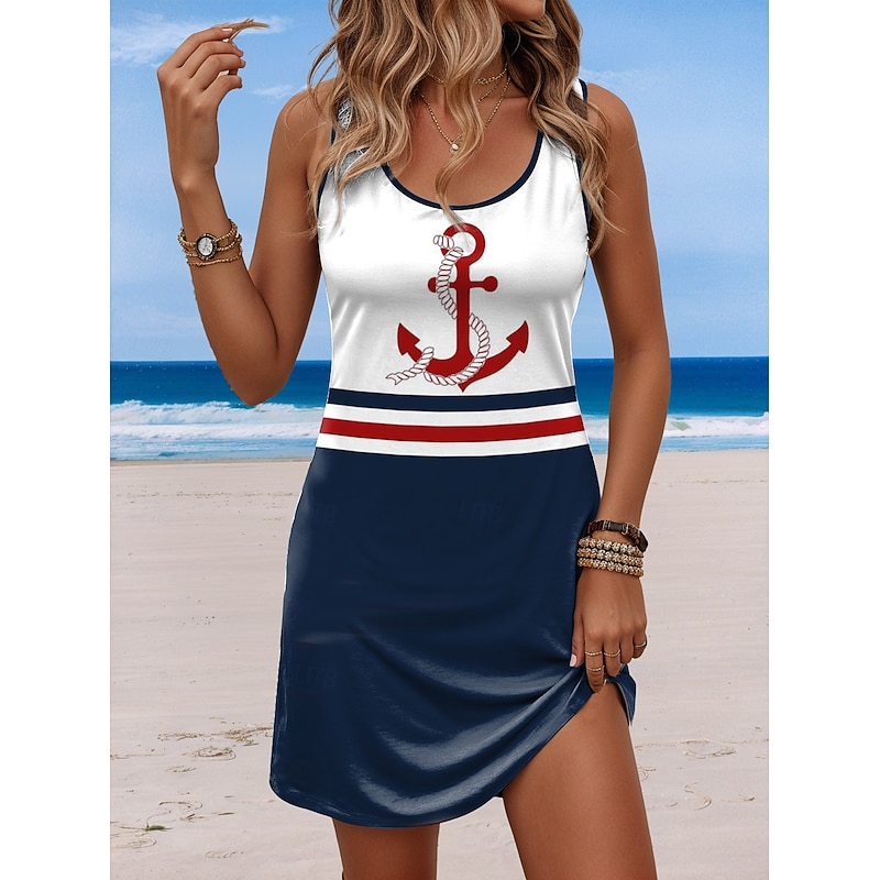 Women's Mini Dress Petite Dress Petite Dress Sundress A Line Dress Tank Dress Casual Vacation Daily Beach Loose Fit Heart Rose Flag Sleeveless Crew Neck White Red Royal Blue Blue Summer 15
