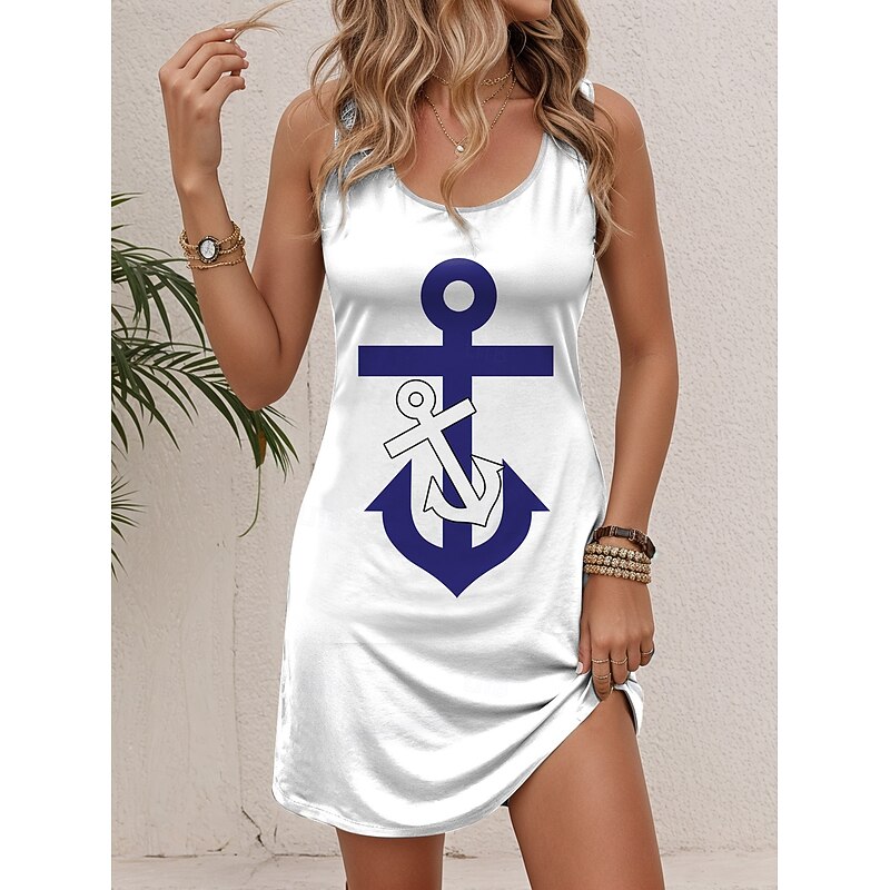 Women's Mini Dress Petite Dress Petite Dress Sundress A Line Dress Tank Dress Casual Vacation Daily Beach Loose Fit Heart Rose Flag Sleeveless Crew Neck White Red Royal Blue Blue Summer 32
