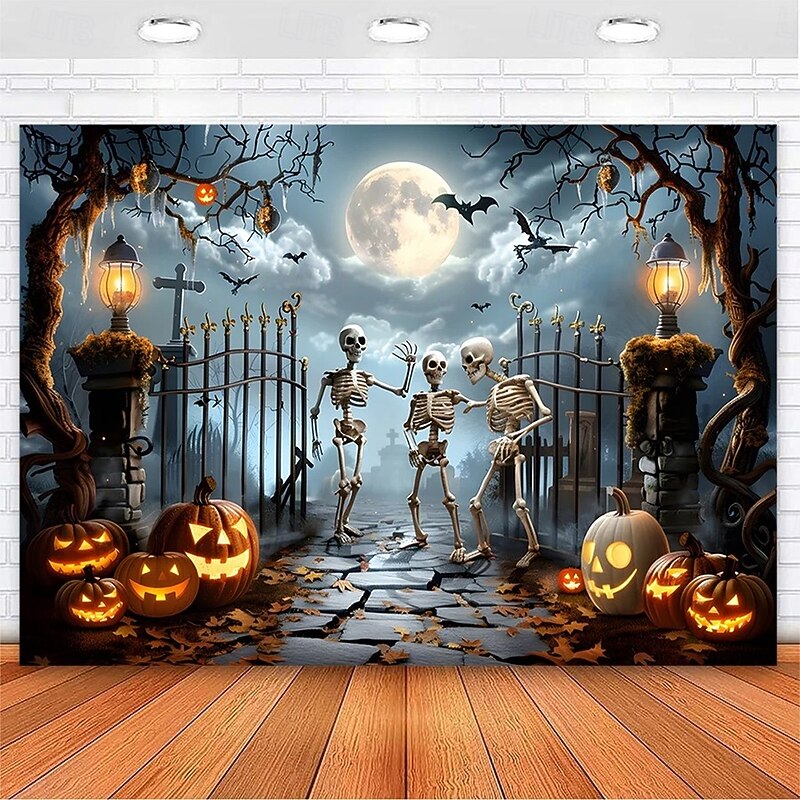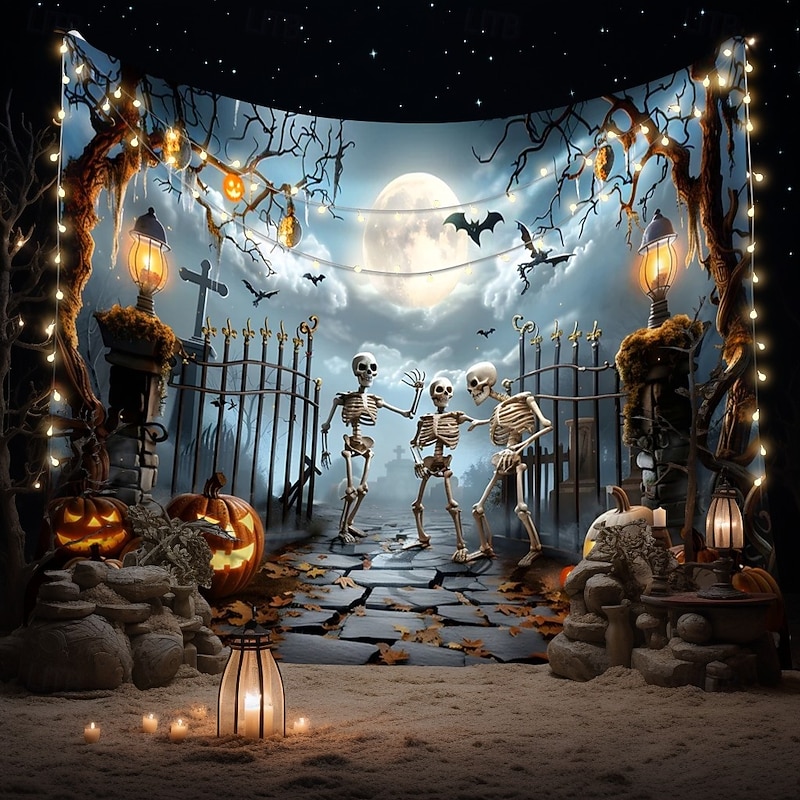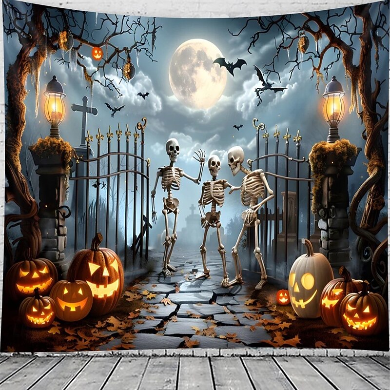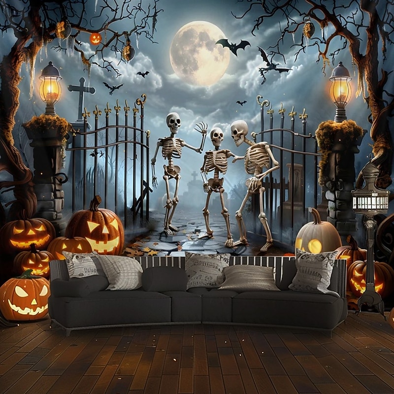 $13.99 - Halloween Skeleton Tapestry – Spooky Graveyard Moonlight Wall Art Backdrop with Jack-O'-Lanterns, Large Hanging Mural Blanket Curtain for Home Bedroom Living Room Decoration 2025. Shop for cheap Halloween Wall Tapestries online? Buy at lightinthebox.com on sale today!