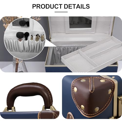 urecity Vintage Luggage Sets of 4 Piece - Hardside Lightweight Spinner Suitcases - Retro Travel Set includes Under Seat Train Case, Cosmetic Train Case, Navy 5