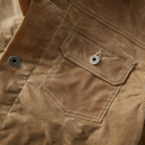 • FIND THE RIGHT FIT: The Waxed Trucker has a traditional fit that hits right at your hip. If you normally wear a XL or XXL, we recommend sizing up. If the sleeves feel a little longer out of the box, they will mold and crease for personalized fit over time