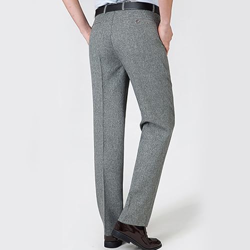 HOT ! Mens Straight Fit Dress Pants Classic Casual Business Office Work Big and Tall Expandable Waist Cotton Linen Trousers