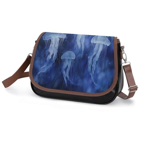 Women's Handbag Dark Blue Jellyfish Patterns Satchel Bag Leather Crossbody Bag Waterproof Messenger Bag 1