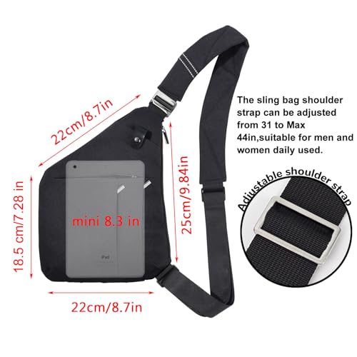 • 【Light Weight】- This sling bag adopts sturdy nylon materials which make it more portable while you go out with it. Large zippered pocket suitable for 8.3 inch mini ipad. Smart phone pocket suitable for 6.7 inch phone.