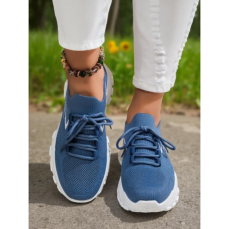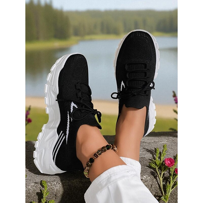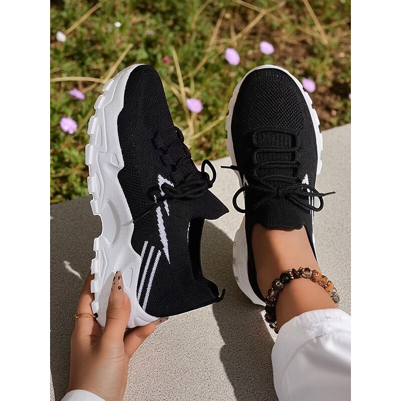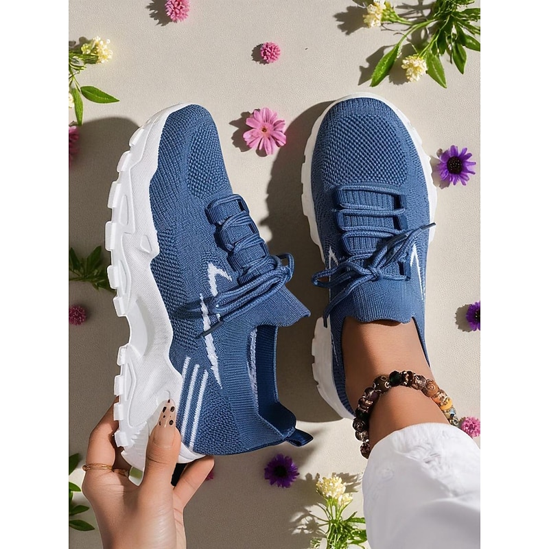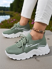 HOT ! Women's Green Flyknit Lace Up Sneakers – Lightweight Breathable Running Shoes for Gym, Walking and Casual Wear